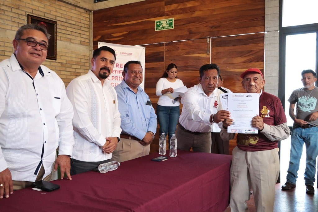 El Instituto Estatal de la Educación para los Adultos del Estado de Campeche (IEEA) realizó entrega de constancias y certificados de estudios a personas educandas del municipio de Escárcega que concluyeron sus niveles de alfabetización, primaria y secundaria.