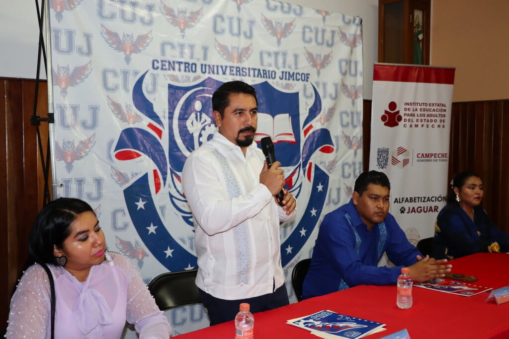 El presídium estuvo conformado por Jorge Alberto Sanmiguel Wong, Director General del IEEA Campeche; Jovanny Jiménez Velázquez, Rector del Centro Universitario JIMCOF; Diana Idalia Camarena Lugo, Directora Operativa del CUJ y Eloísa Hernández, Delegada Municipal del IEEA en Ciudad del Carmen.