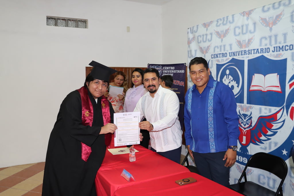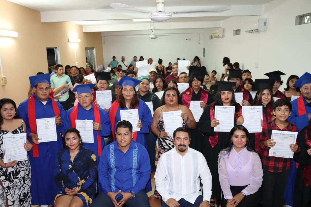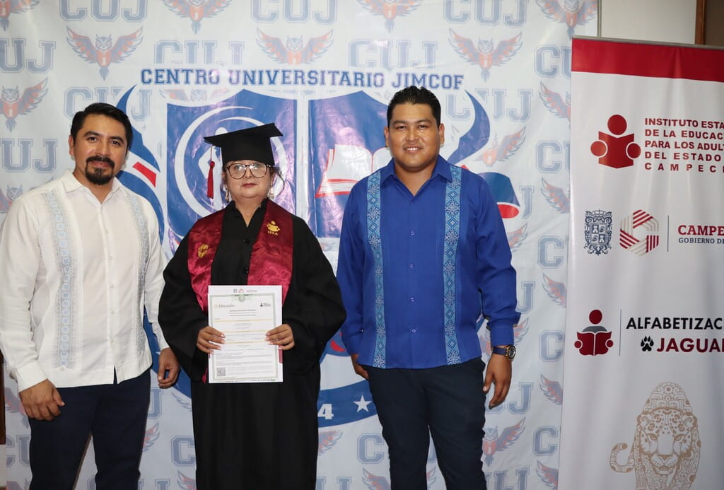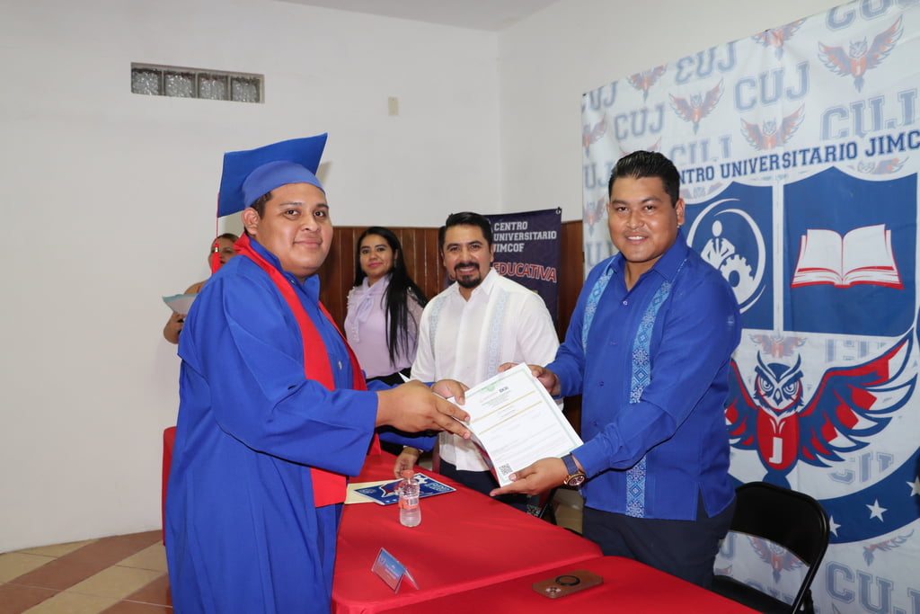 Dándole seguimiento a los convenios con instituciones educativa, el Instituto Estatal de la Educación para los Adultos participó en la entrega de 50 certificados de primaria y secundaria durante la ceremonia de graduación del Centro Universitario JIMCOF, en Ciudad del Carmen.
