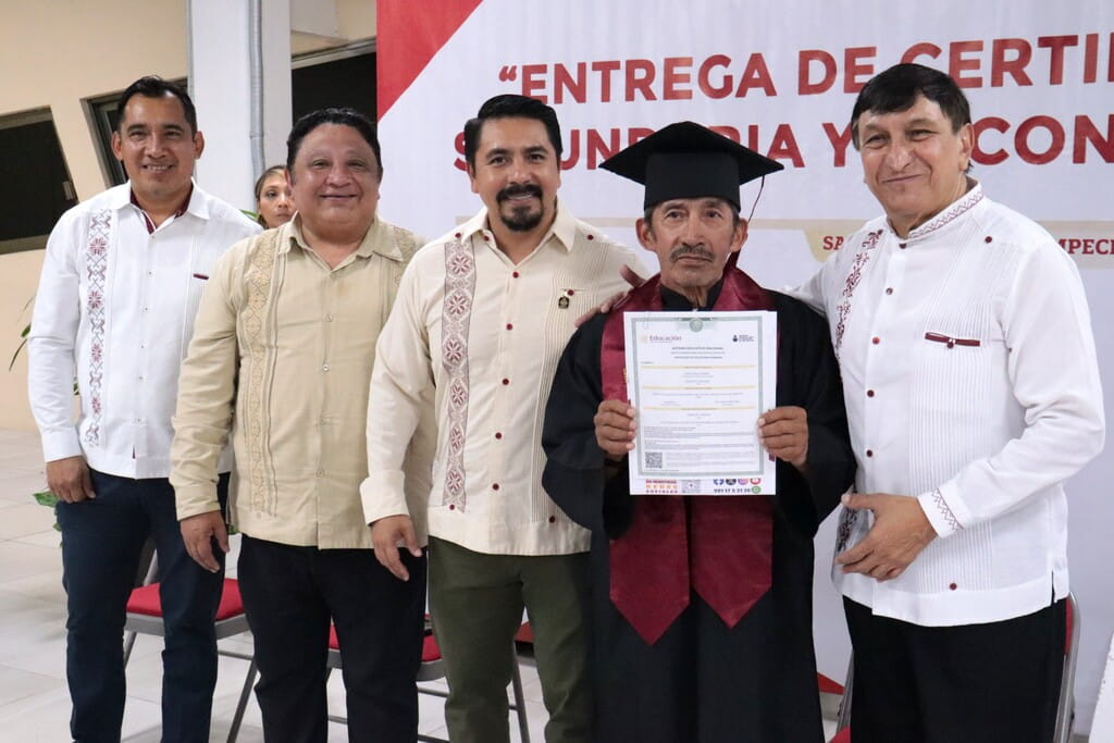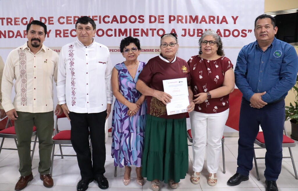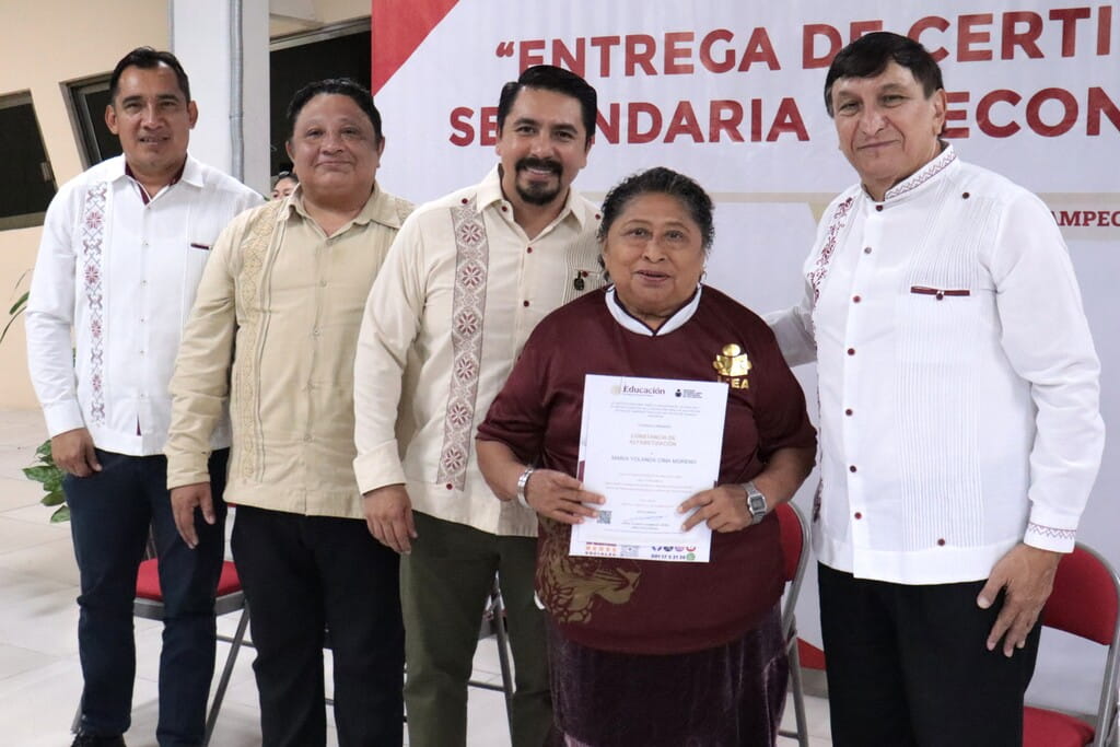 El Instituto Estatal de la Educación para los Adultos (IEEA) realizó la entrega de 32 constancias de alfabetización, 12 certificados de primaria y 16 certificados de secundaria en la localidad de Vicente Guerrero, municipio de Hopelchén, sumando un total de 60 documentos oficiales otorgados a jóvenes y adultos que concluyeron su educación básica.