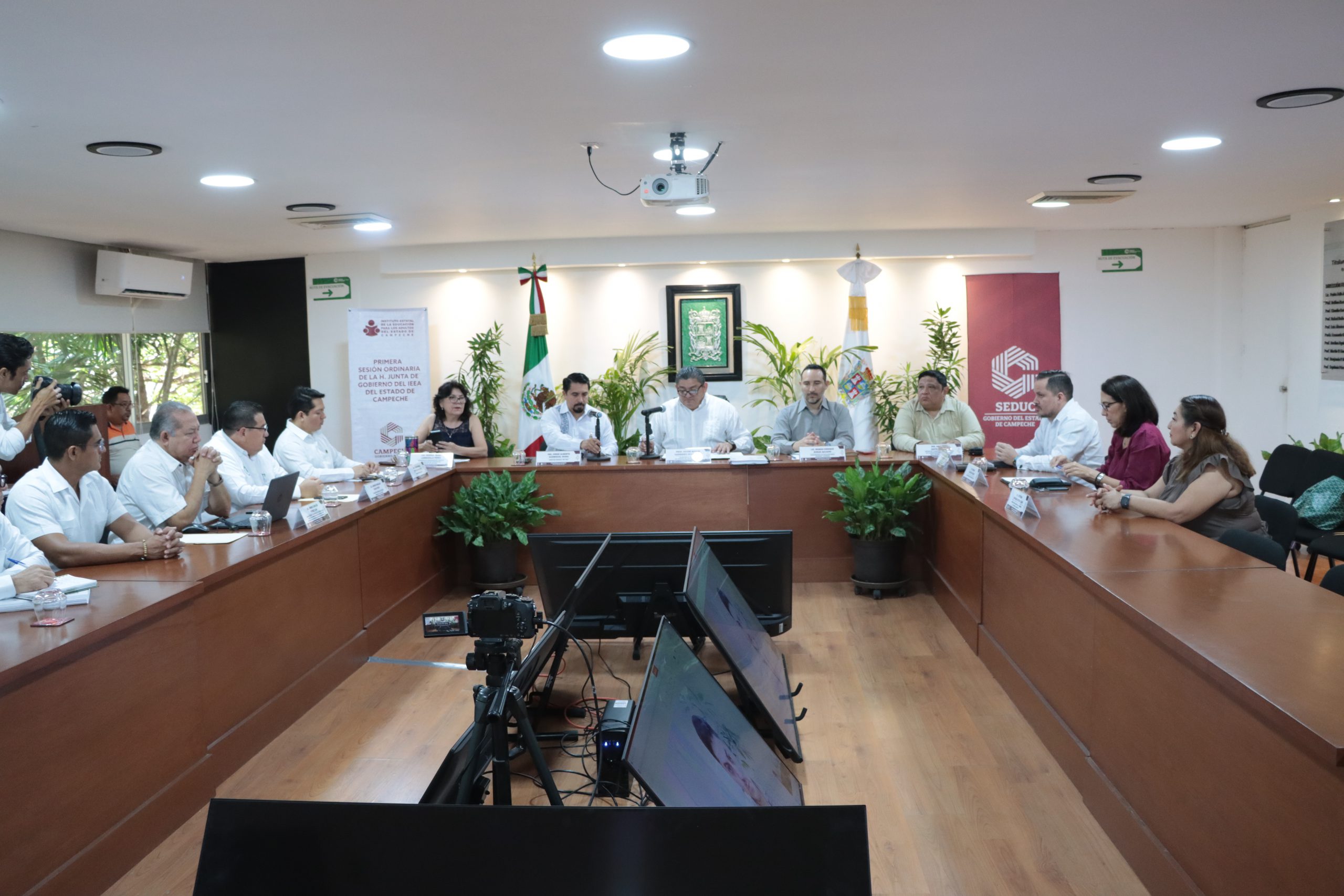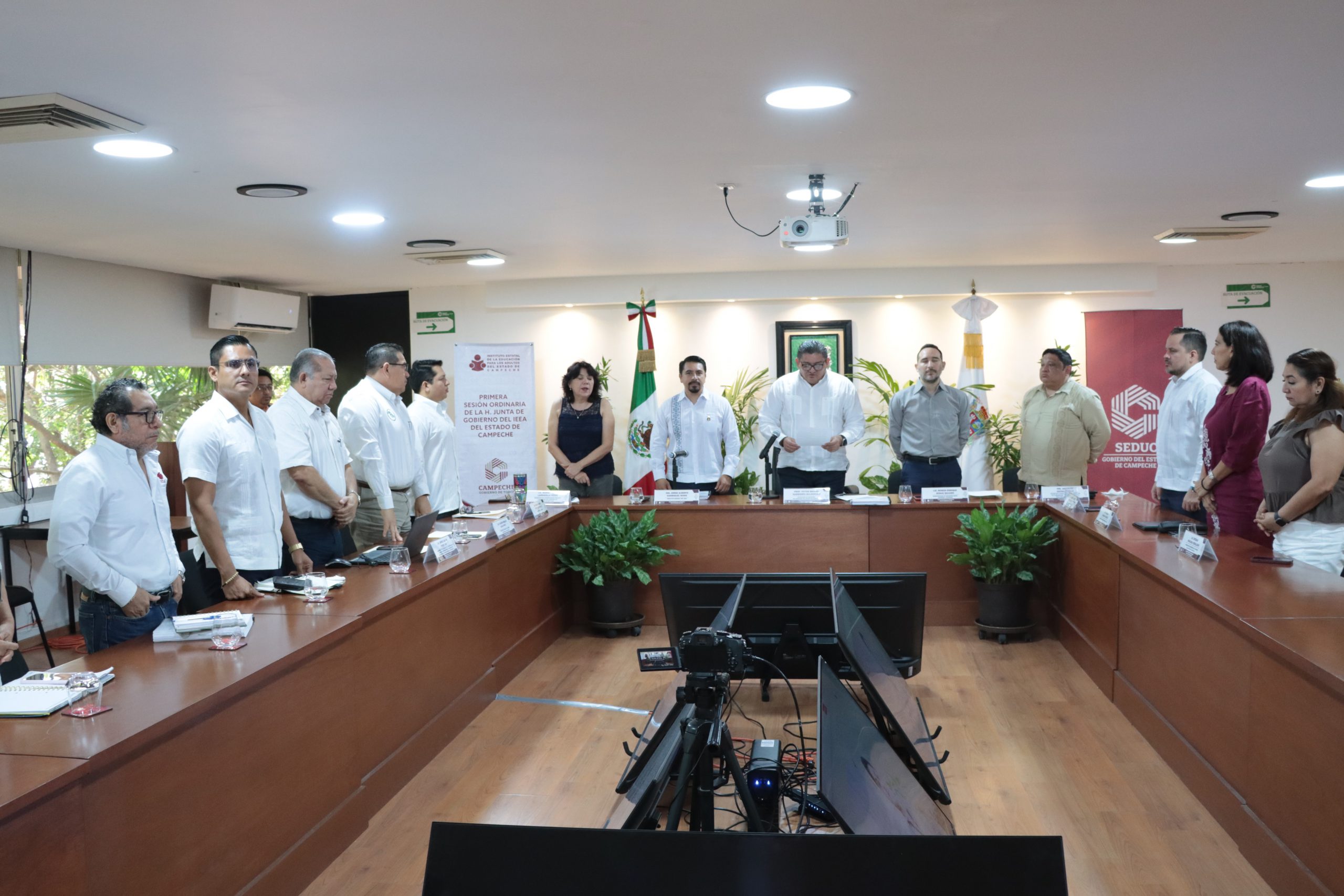 En representación del Titular de SEDUC Cam, Prof. Victor Manuel Sarmiento Maldonado, el Subsecretario de Educación Media Superior y Superior, Román Rosas Quijano, presidió la Junta de Gobierno en coordinación con el subdirector de Operación Regional C del INEA Nacional, Raymundo Altamirano Aragón, quien representó al Director General de esta dependencia Federal, Armando Contreras Castillo.