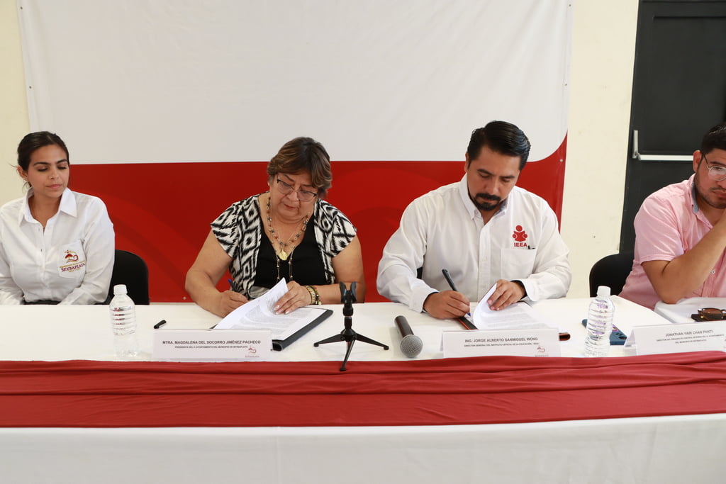 La firma de convenio fue realizada por la Presidenta Municipal, la Lic. Magdalena Jiménez y el Director General del IEEA, el Ing. Jorge Alberto Sanmiguel Wong, titulares con el firme compromiso de hacer avanzar la alfabetización en el estado.